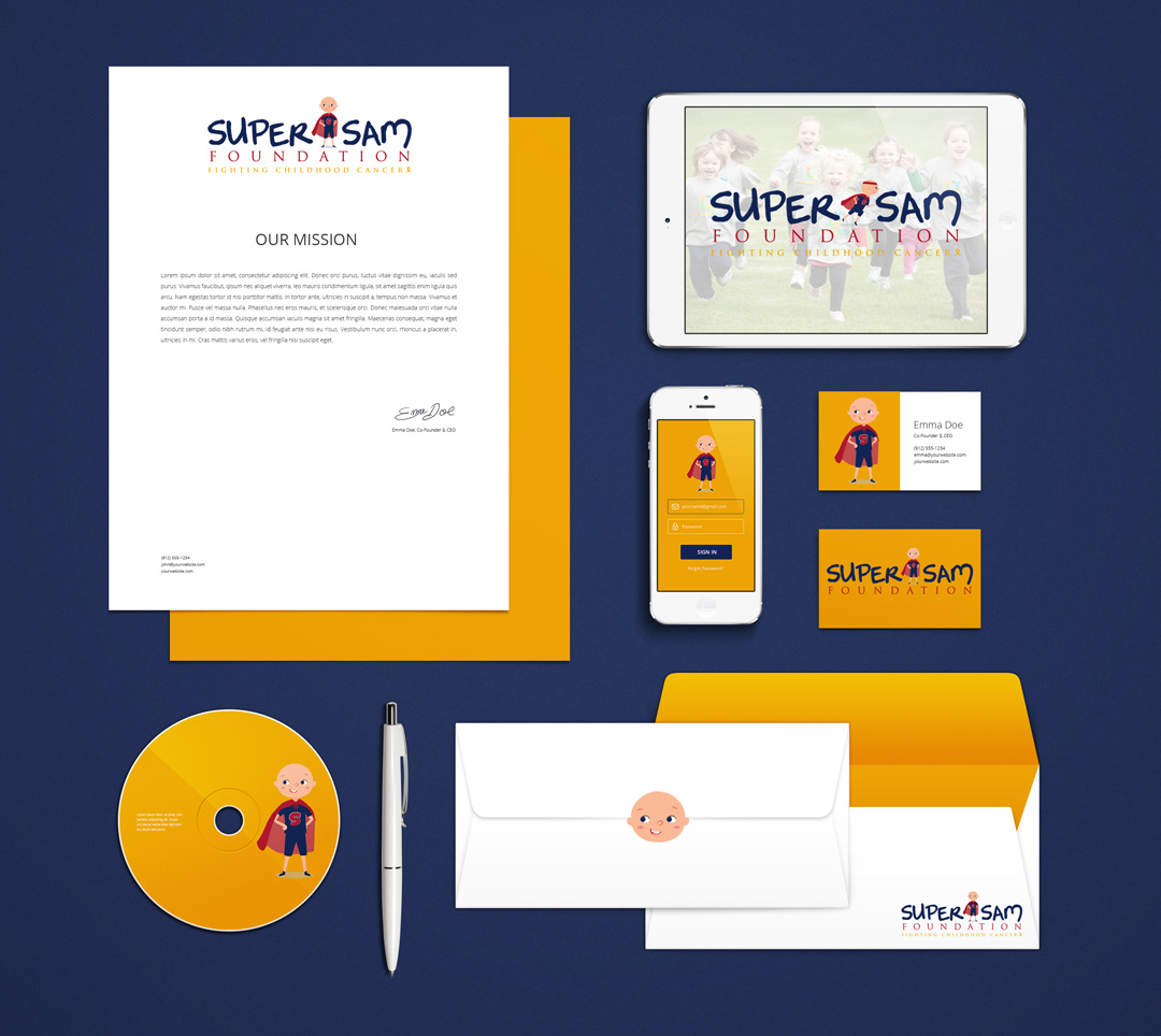 In early 2017, SkinnyD Creative Studio began working with the childhood cancer charity Super Sam Foundation on a complete head-to-toe rebrand. The logomark the organization had been using since it's inception contained an existing copyrighted design element and as such could not be trademarked for protected use. We worked closely with the governing board of the charity to craft a logo and illustrations that would call back to that original logo while still providing a unique and child-friendly look and feel for the organization.