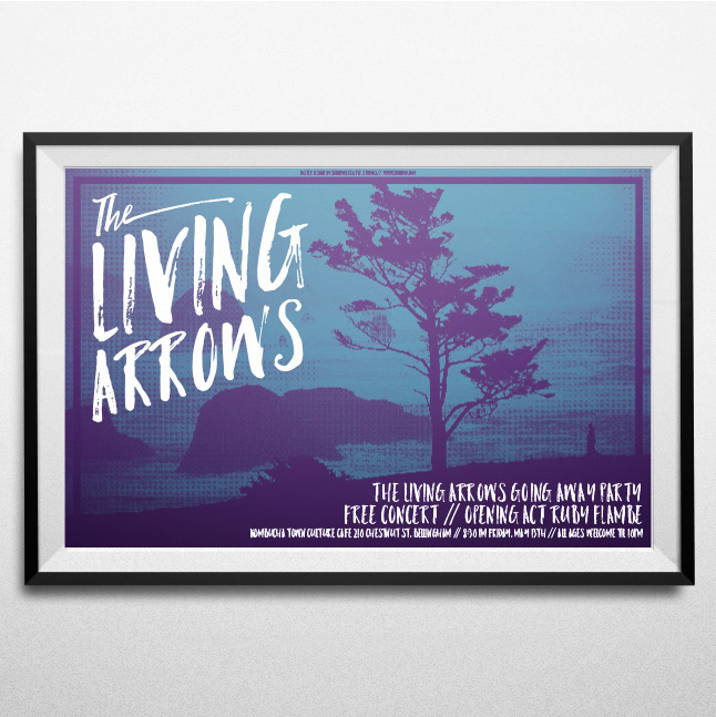 Towards the middle of 2016, we at SkinnyD Creative received an email from a band we weren't familiar with. Washington band The Living Arrows had been tearing it up all along the Pacific Coast for years, but were in need of a break. But they wanted one more blow out show, and needed a real way to get the word out. We worked with them on a poster that paid homage to their home and their sound and helped pull in a record number show for them to go out on.