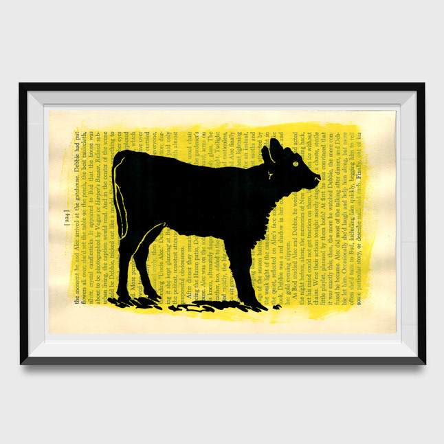 A continuation of a series of 1, 2, and 3 color screen prints on old book pages.